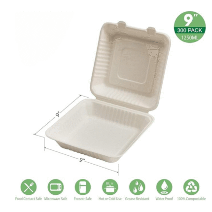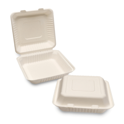 Bagasse Burger Meal Box White (230x230x50mm/9×9″)