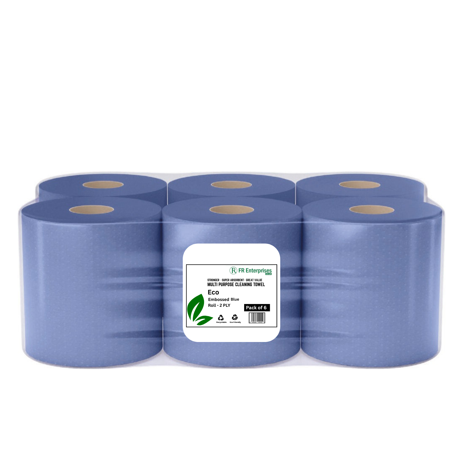 Premium blue centrefeed roll offering exceptional durability and absorbency—ideal for industrial or high-traffic areas with color-coded hygiene solutions.
