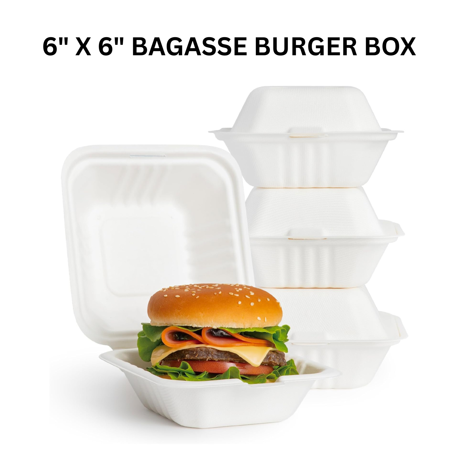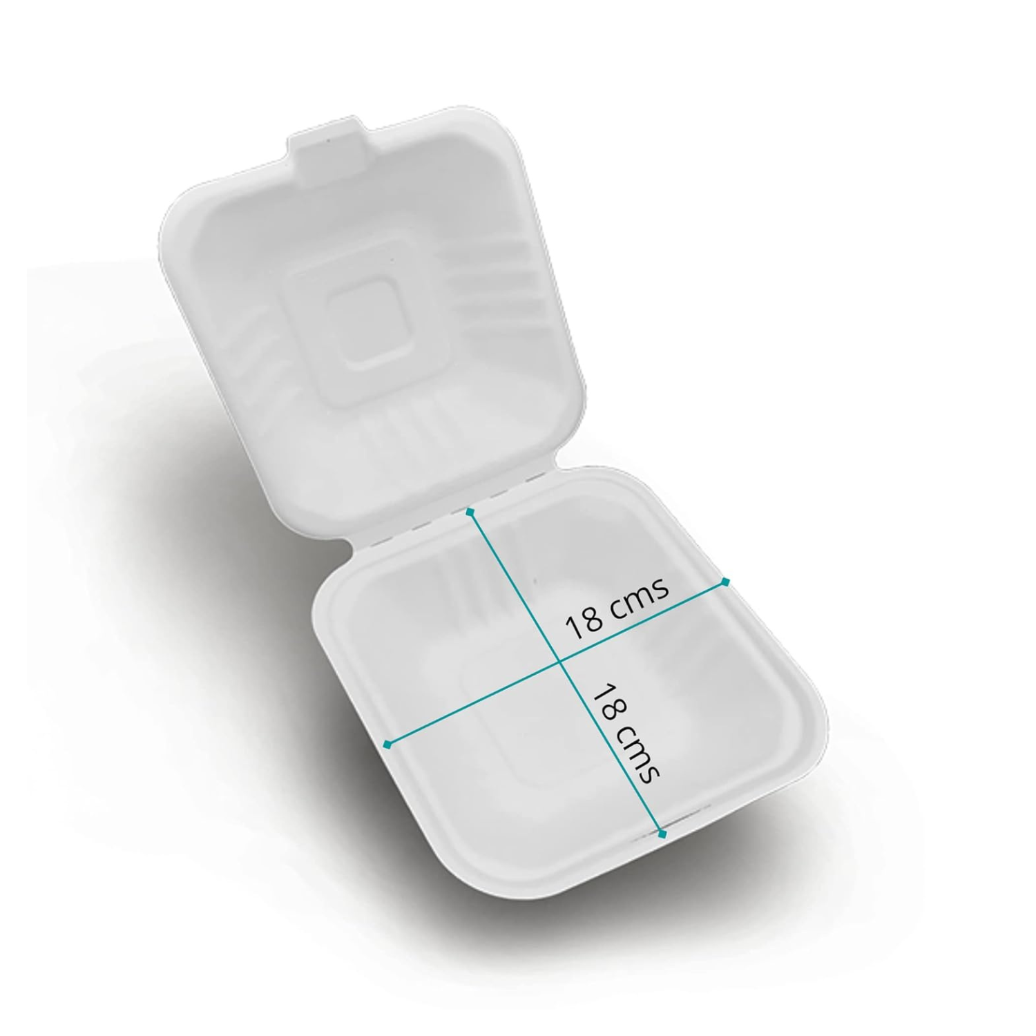 Bagasse Burger Meal Box White (230x230x50mm/9×9″)