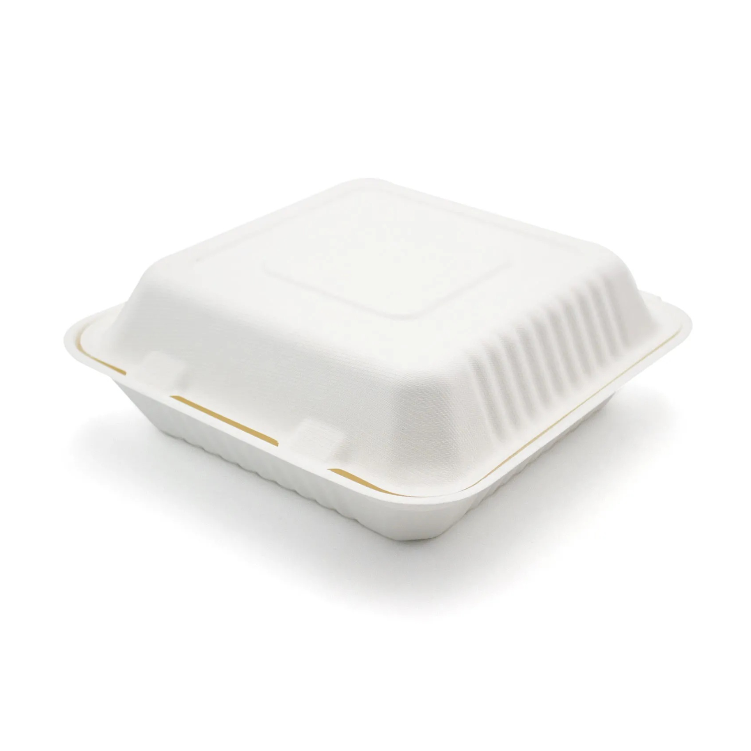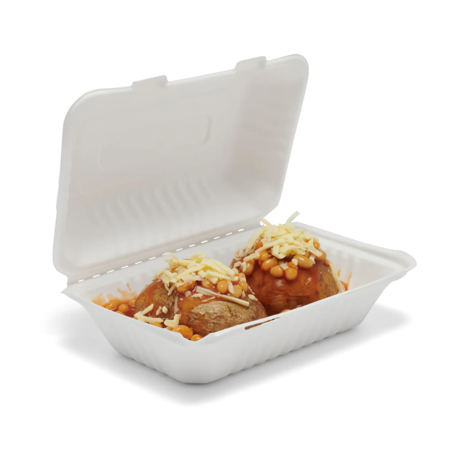 Bagasse Burger Meal Box White (230x230x50mm/9×9″)