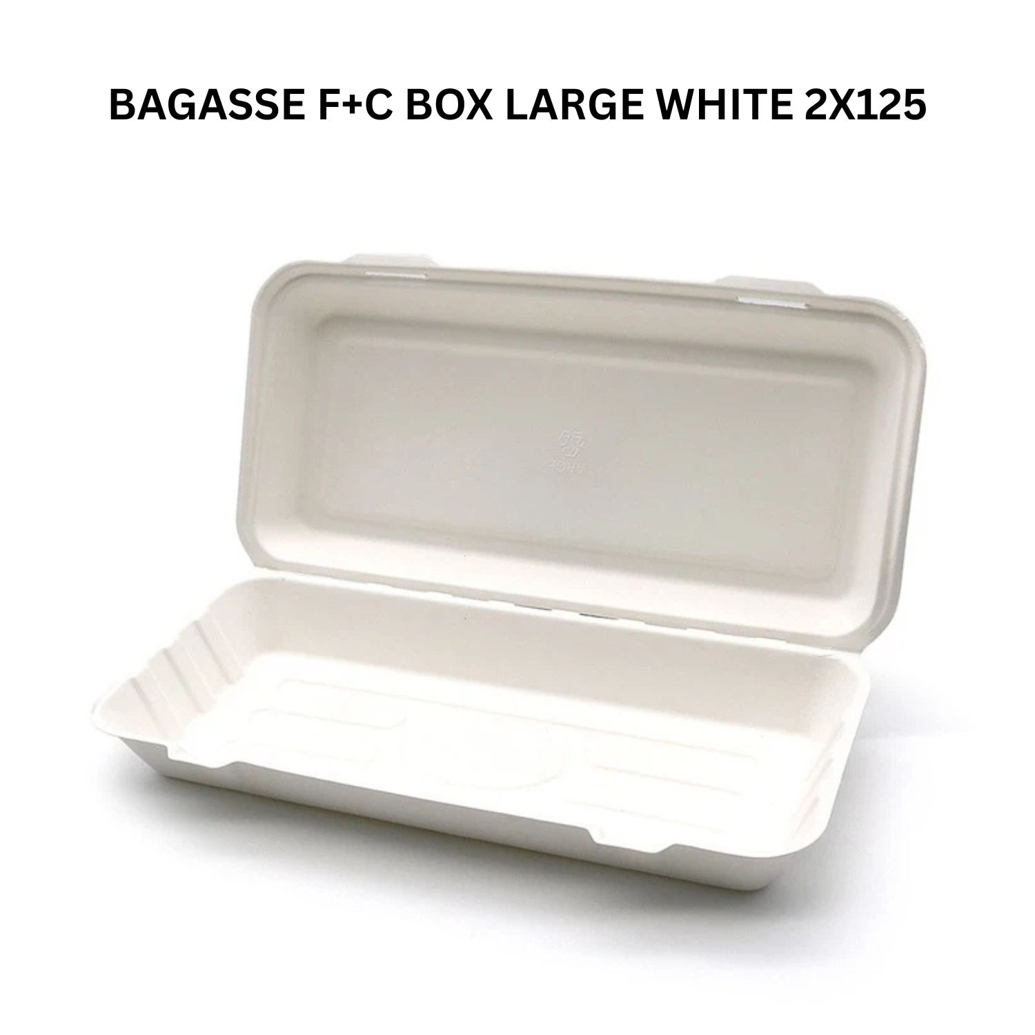 Bagasse F+C Box Large White (324x155x60mm/12.75x6x2.5”)